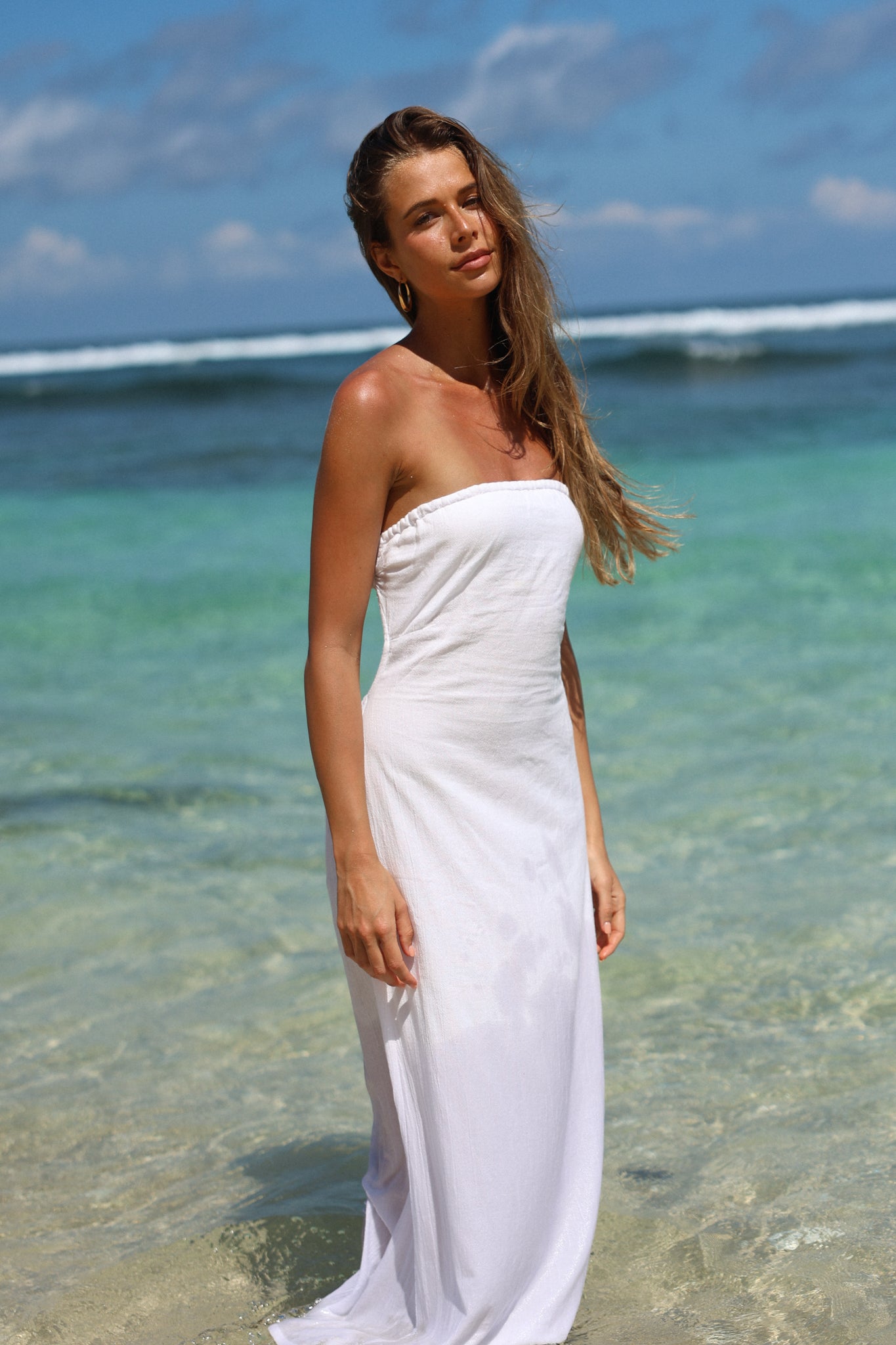 - Strapless midi dress